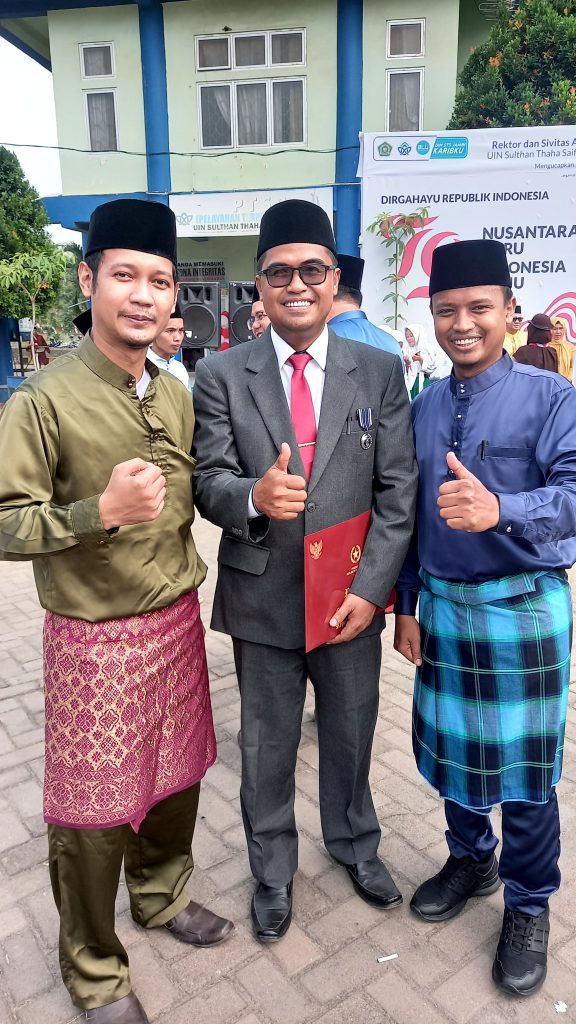 Kepala Perpustakaan UIN Sulthan Thaha Saiffudddin Jambi Mohd. Isnaini, S.Pd.I., M.Hum menerima penghargaan Satyalencana Satya Karya 20 tahun masa pengabdian seabgai Aparatur sipil Negara (ASN) sebagai Pustakawan UIN Sulthan Thaha Saiffuddin Jambi, perhargan mendali Perak serta sertifikat yang diberi oleh Presiden Rebuplik Indonesia H.Joko Widodo merupakan penghargaan sebagai ASN yang pengabdiannya telah banyak memberi kontribusi untuk Negara dan lembaga. Penyematan Mendali Perak langusng disemat oleh rektor UIN Sulthan Thaha Saifuddin Jambi pada kegiatan Upacara HUT RI k3 79 tahun 2024 sabtu kemaren (17/08/2024) bertempat dihalaman kampus UIN Sulthan Thaha Saiffuddin Jambi, pada momen tersebut tidak hanya Kepala Perpustakaan yang meneriman penghargaan tersebut, tetapi ada 52 orang ASN UIN STS Jambi yeng menerima penghargaan tersebut ada Satyalencana 30, 20 dan 10 Tahun pengabdian.