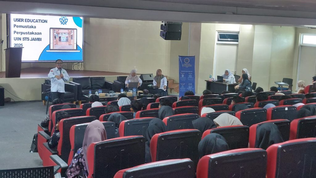 Jambi, 8 September 2025 – Kepala UPT Perpustakaan UIN Sulthan Thaha Saifuddin Jambi, Mohd Isnaini, S.Pd.I., M.Hum., menjadi narasumber dalam kegiatan User Education yang diselenggarakan di Gedung GCR Wing C Fakultas Adab dan Humaniora, Senin (8/9).