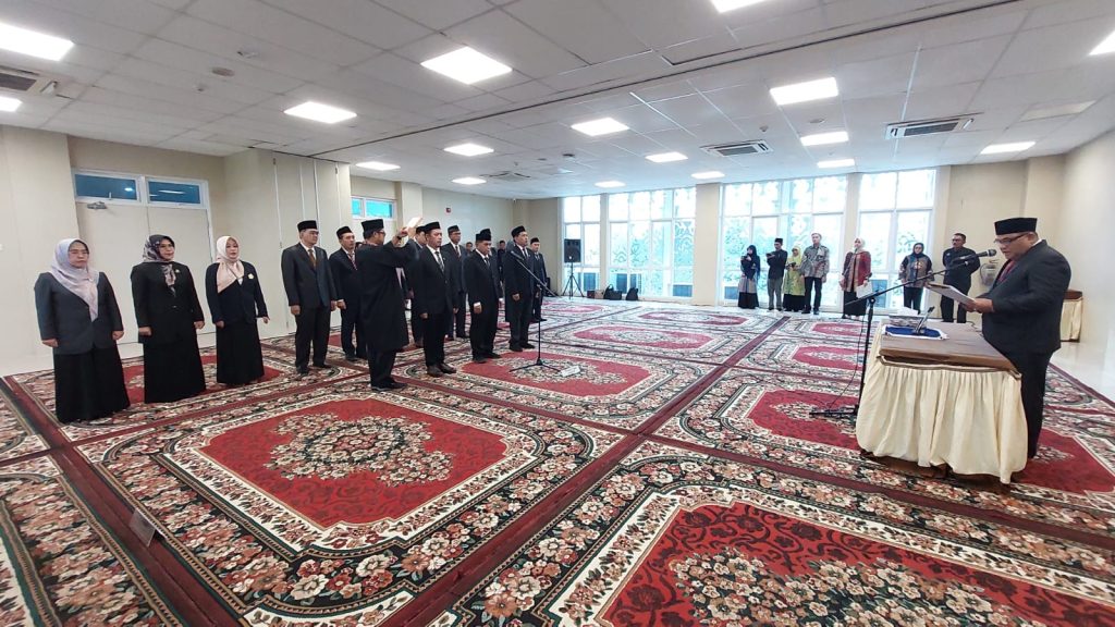 Jambi, 16 Januari 2025 – Dalam prosesi pelantikan dan pengambilan sumpah jabatan di lingkungan UIN Sulthan Thaha Saifuddin Jambi, Bapak Mohd. Isnaini, S.Pd.I., M.Hum selaku Pelaksana Tugas (PLT) Kepala Perpustakaan turut berperan aktif membantu jalannya acara tersebut sebagai rohaniawan.